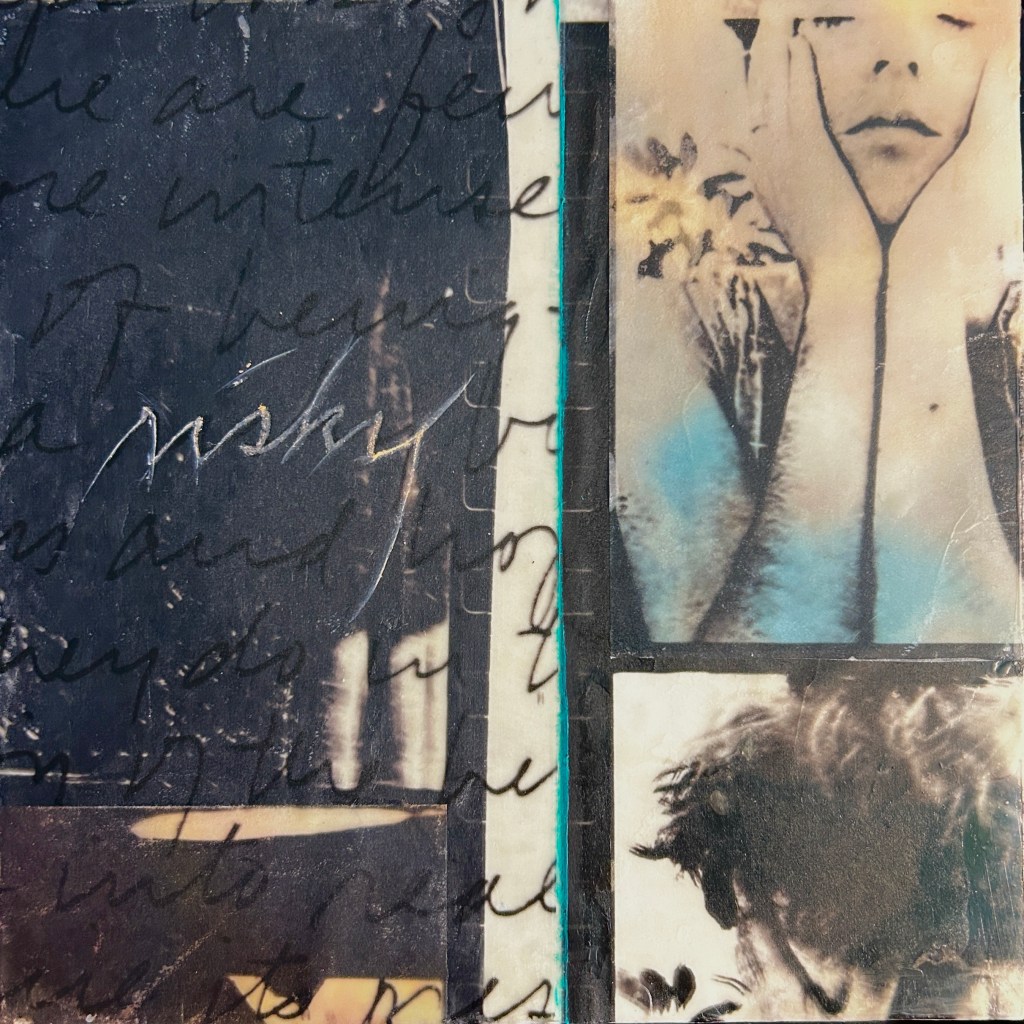 In 2024 these themes were represented by images very personal to me: my grandmother’s silk hankies, the vase left to me by a late friend. But over time the photo-encaustic work became too literal. At the start of 2025 I began adding encaustic paint and oil pastel over photographs to suggest what I call the ‘ash of memory’. These pieces engage the viewers curiosity as they study the image. They encourage the viewer to find the story I am trying to tell or to create one of their own.