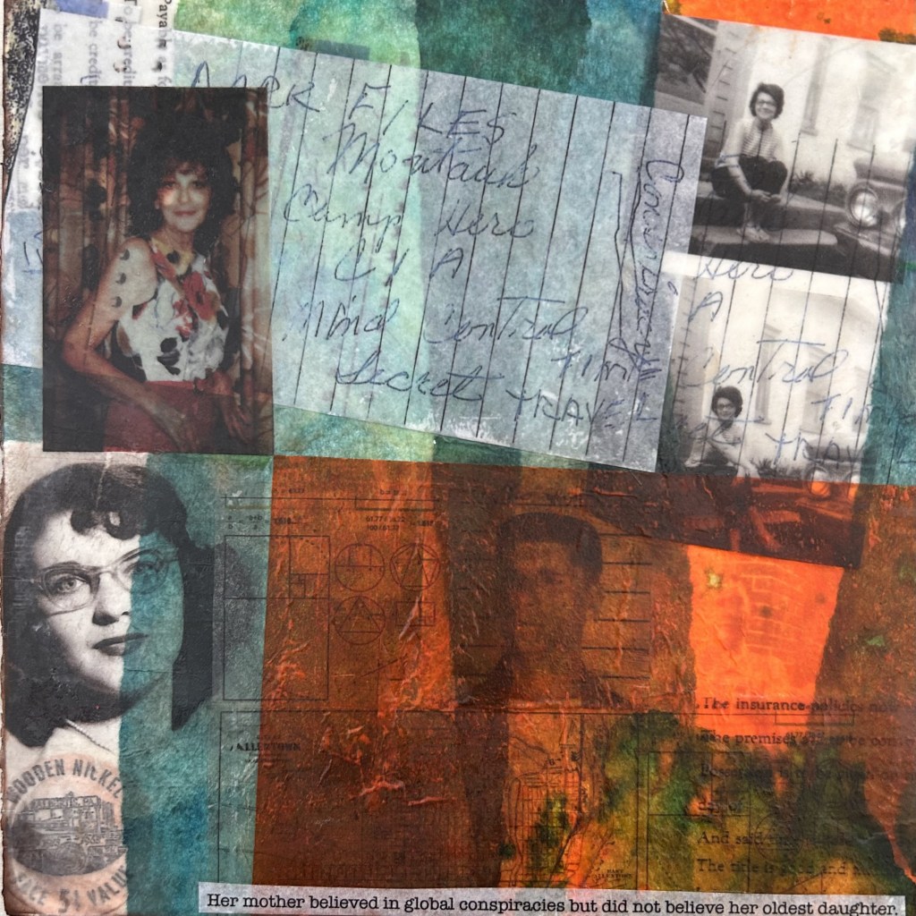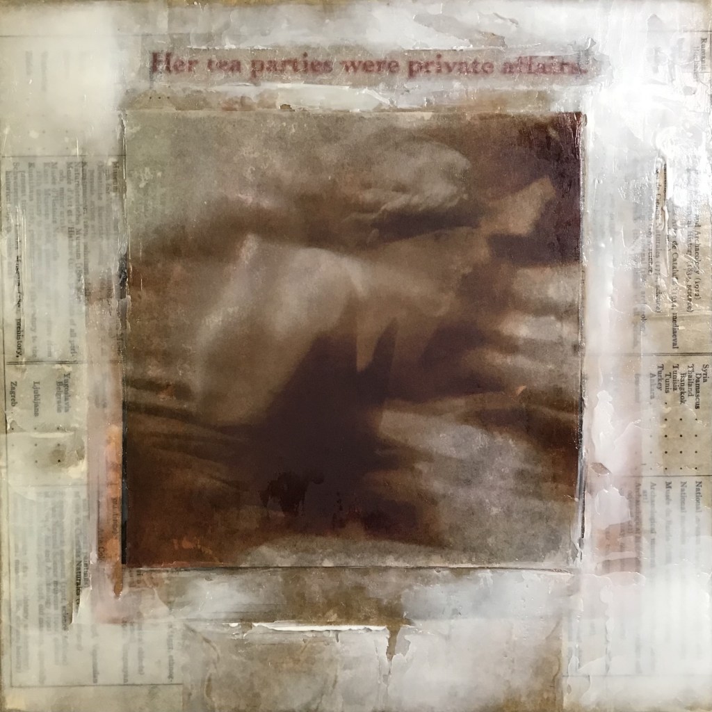 These images incorporate personal photographs, family images, self portraits and text with beeswax, damar resin oil pigments and found objects.